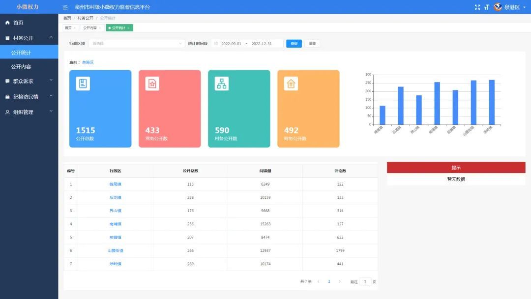 泉州市村级小微权力监督信息平台泉港区应用界面