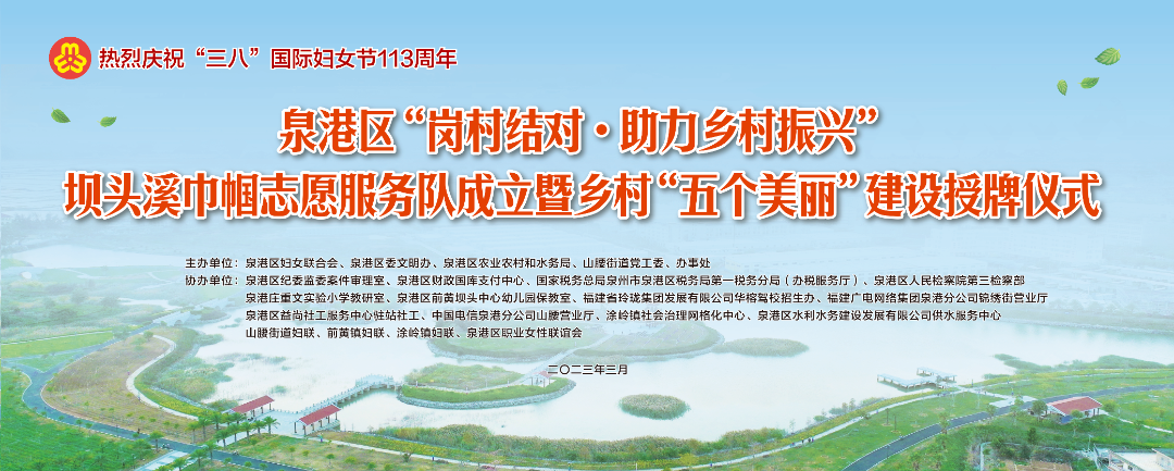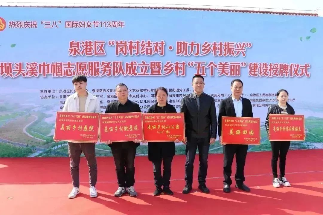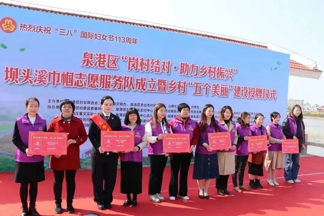 3月3日,泉港区举办“岗村结对·助力乡村振兴”坝头溪巾帼志愿服务队成立暨乡村“五个美丽”建设授牌仪式。区委副书记张井丽参加活动。