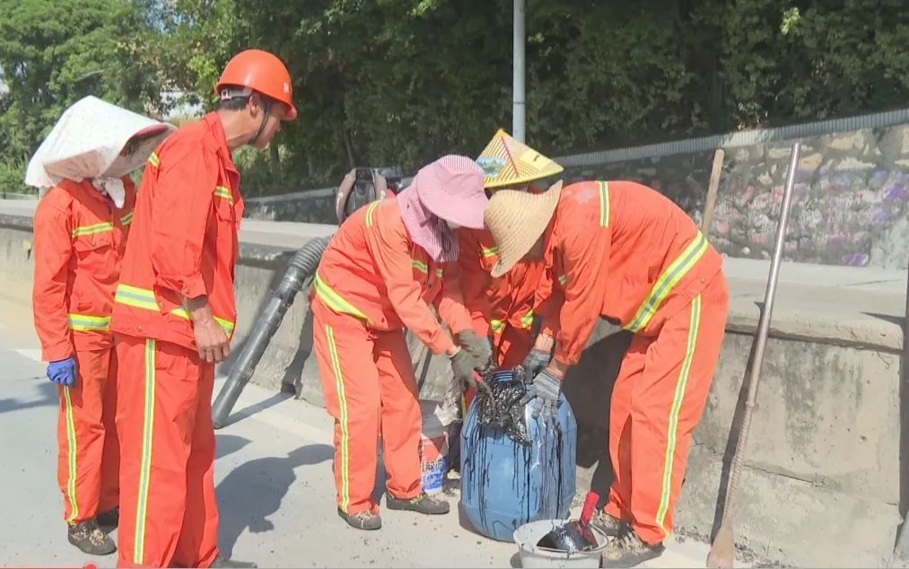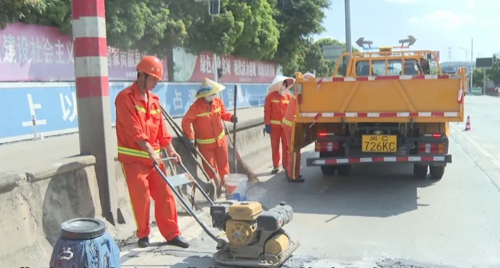 烈日下的324国道上,灌缝机、铣刨机等作业车辆轰鸣不断。泉港公路分中心的养路工人们正在热火朝天地进行路面整治工作,他们铲路肩、清水沟、填坑槽,忙碌的身影在烈日下显得格外耀眼。