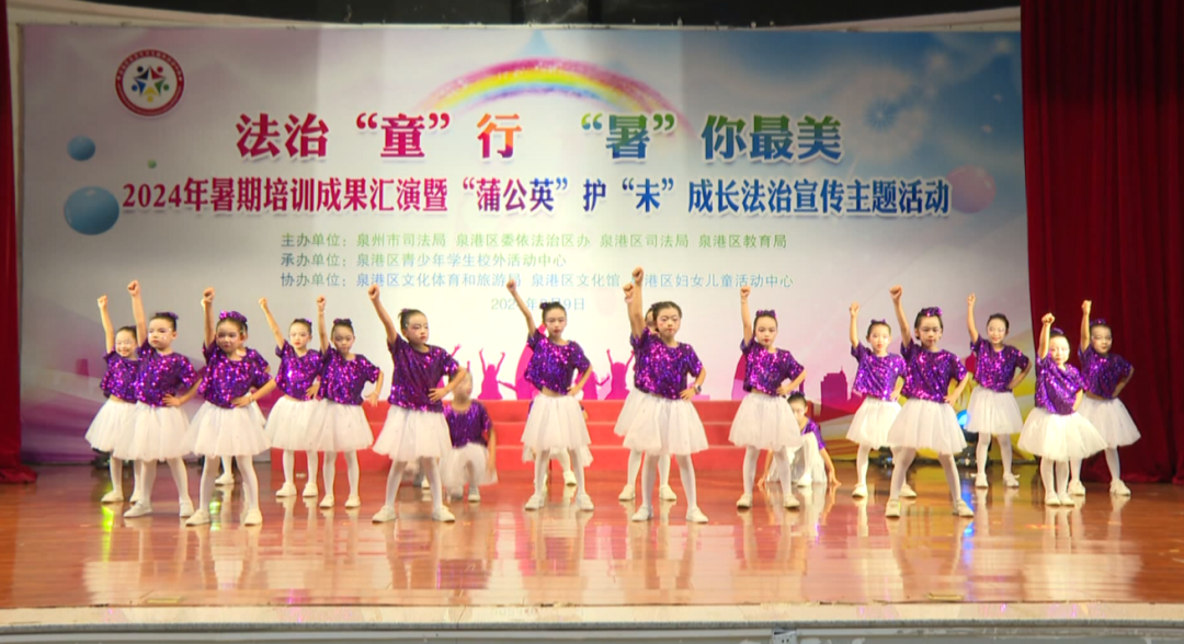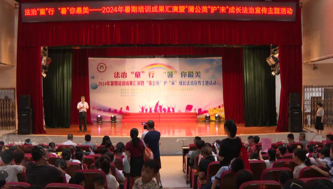 为落实全市预防青少年违法犯罪“百日攻坚”行动工作部署,全面加强青少年法治宣传教育,进一步提高青少年法治意识和自我保护意识,近日,全区法治“童”行 “暑”你最美—2024年暑期培训成果汇演暨“蒲公英”护“未”成长法治宣传活动在区文化中心举行。