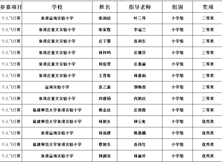 在本次大赛上,泉港区代表队凭借出色的动手实践能力,在个人飞行赛中获得二等奖1名,三等奖8名,优秀奖4名。