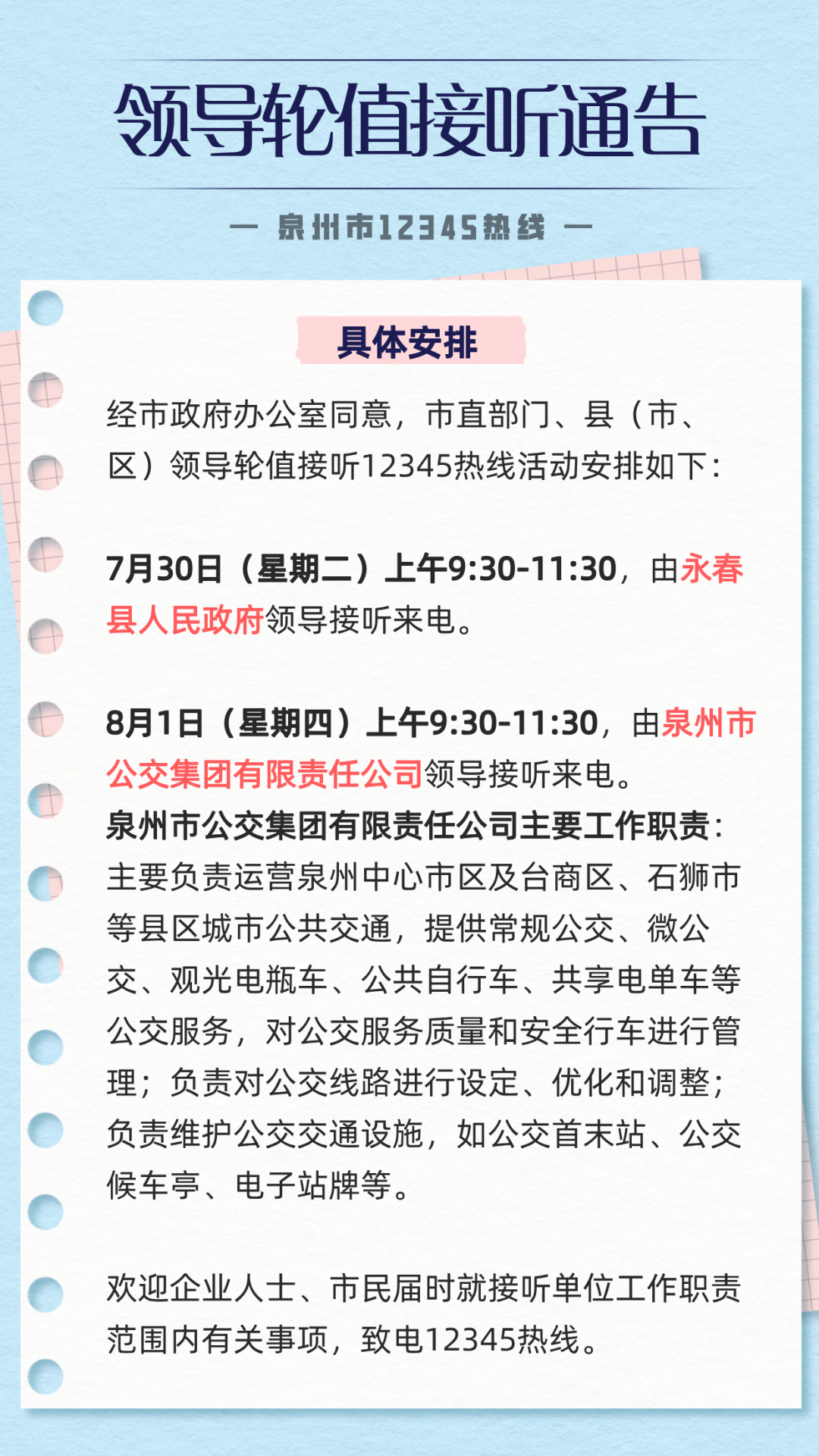永春县人民政府、泉州市公交集团有限责任公司即将接线!