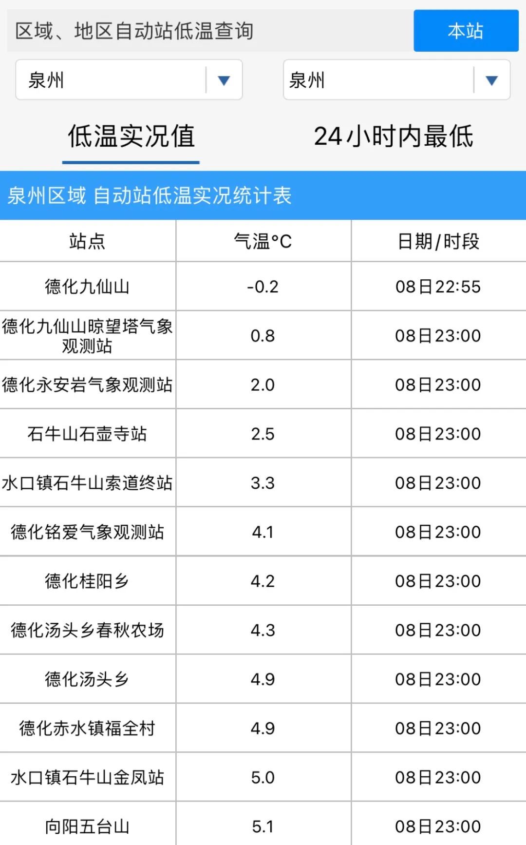 昨日泉州最低温仅-0.2℃