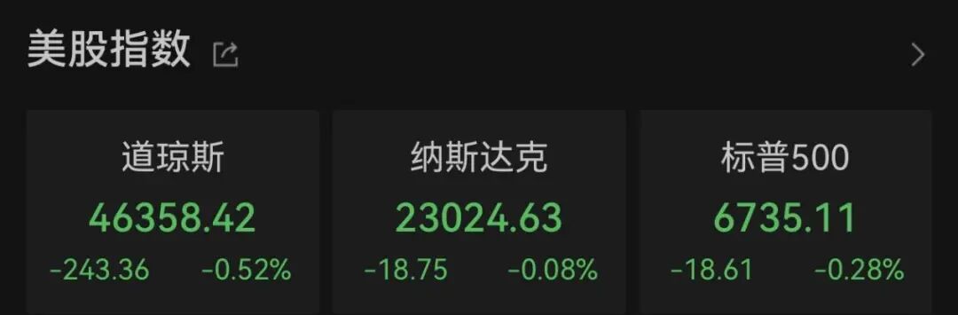 截至收盘,道指跌0.52%,标普500指数跌0.28%,纳指微跌0.08%。