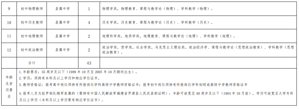 福州罗源县2025年第二批次公开招聘参聘教师43名