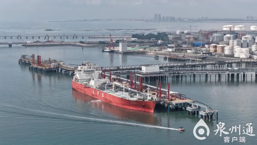 今年8月份以来,福建中燃湄洲湾能源码头几乎每周都有化工原料船靠泊。(张彬彬 摄)
