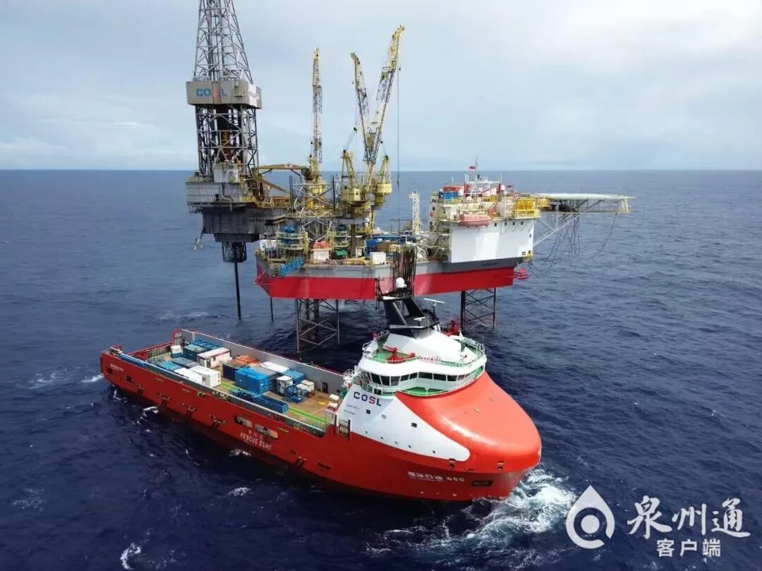 本月初,中国海油“海洋石油660”船向海上钻井作业平台运输所需物资,包括蓝海博达生产的高端油化学品等。(李政伯 摄)