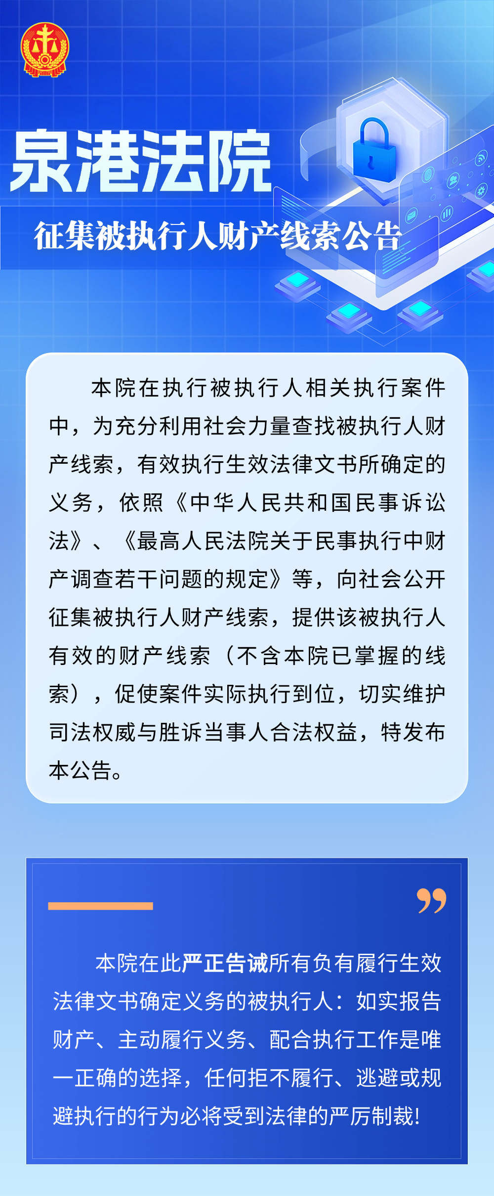 联系地点:泉州市泉港区人民法院执行局