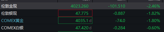 北京时间10月22日晚间,国际金价再度大跌,截至发稿,伦敦金现跌2.46%至4023美元/盎司。