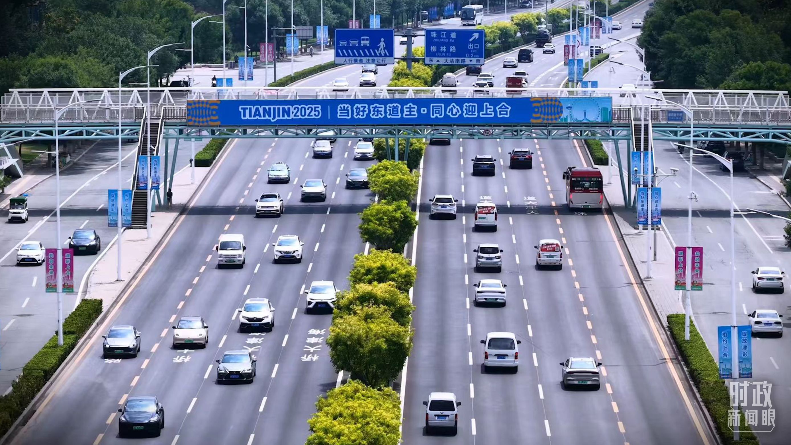 △天津街头的上合组织标语。(总台记者孙强拍摄)