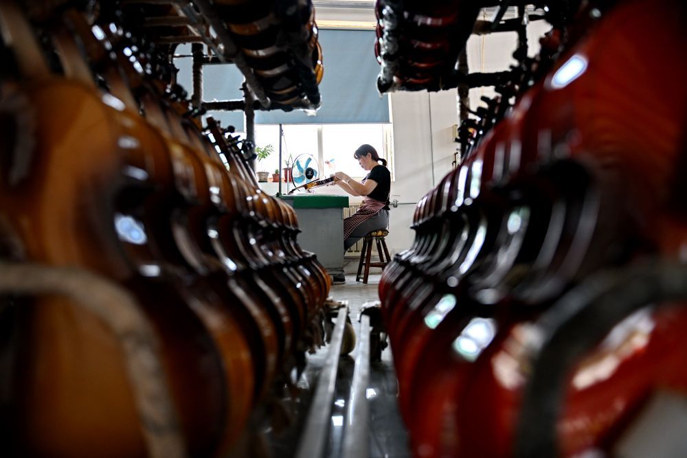 2025年5月28日,河北省武强县一家乐器生产企业的工人在制作尤克里里。武强县乐器产业历经30余年的发展,形成拥有超过150家企业、从业人员万余人的产业集群,产品覆盖100多个品种、400多种规格。近年来,武强县依托乐器文化产业资源,打造集乐器加工、乐器体验、音乐展演和休闲度假等业态为一体的周窝音乐小镇,同时创新“乐器 ”乡村振兴模式,持续增强乐器产业的富民强县作用。2024年武强县乐器产业实现营收23.8亿元,旅游收入超10亿元。