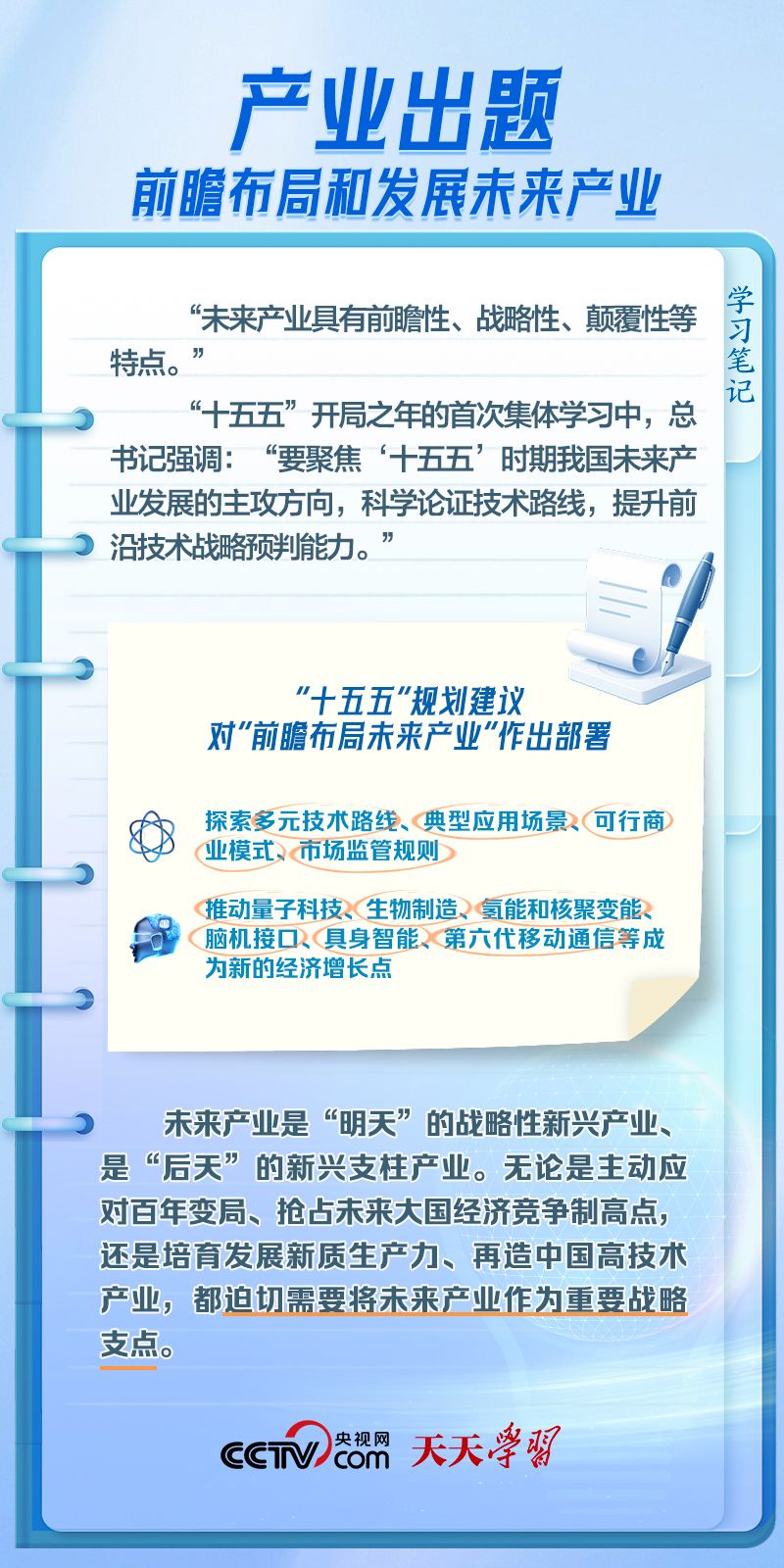 天天学习1月30日,二十届中央政治局举行“十五五”开局之年的首次集体学习,学习主题聚焦前瞻布局和发展未来产业。