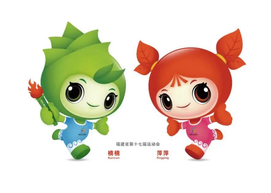 楠字含木,萍字含水,组合成“楠萍”的地名,山水有相逢,草木亦含情,象征着南平山水互相融合的大生态环境,“楠楠”和“萍萍”一起做出奔跑的姿势,代表着阳光、奔放、活力,欢迎海内外来宾莅临南平,感受福建省第十七届运动会的无限魅力。