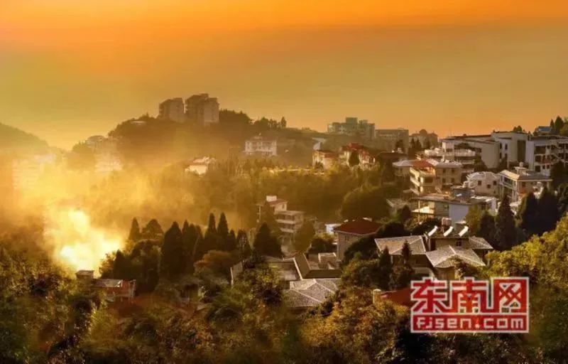 1900-1910年拍摄的鼓岭避暑地全景,可见鼓岭新教堂、万国公益社原址(保牧师别墅)等建筑,公共网球场此时尚未修筑(来源:林轶南收藏)