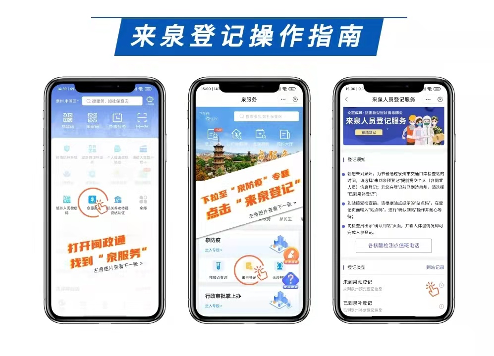 ▲打开“闽政通”APP,点击“泉服务”选项,进入“来泉登记”