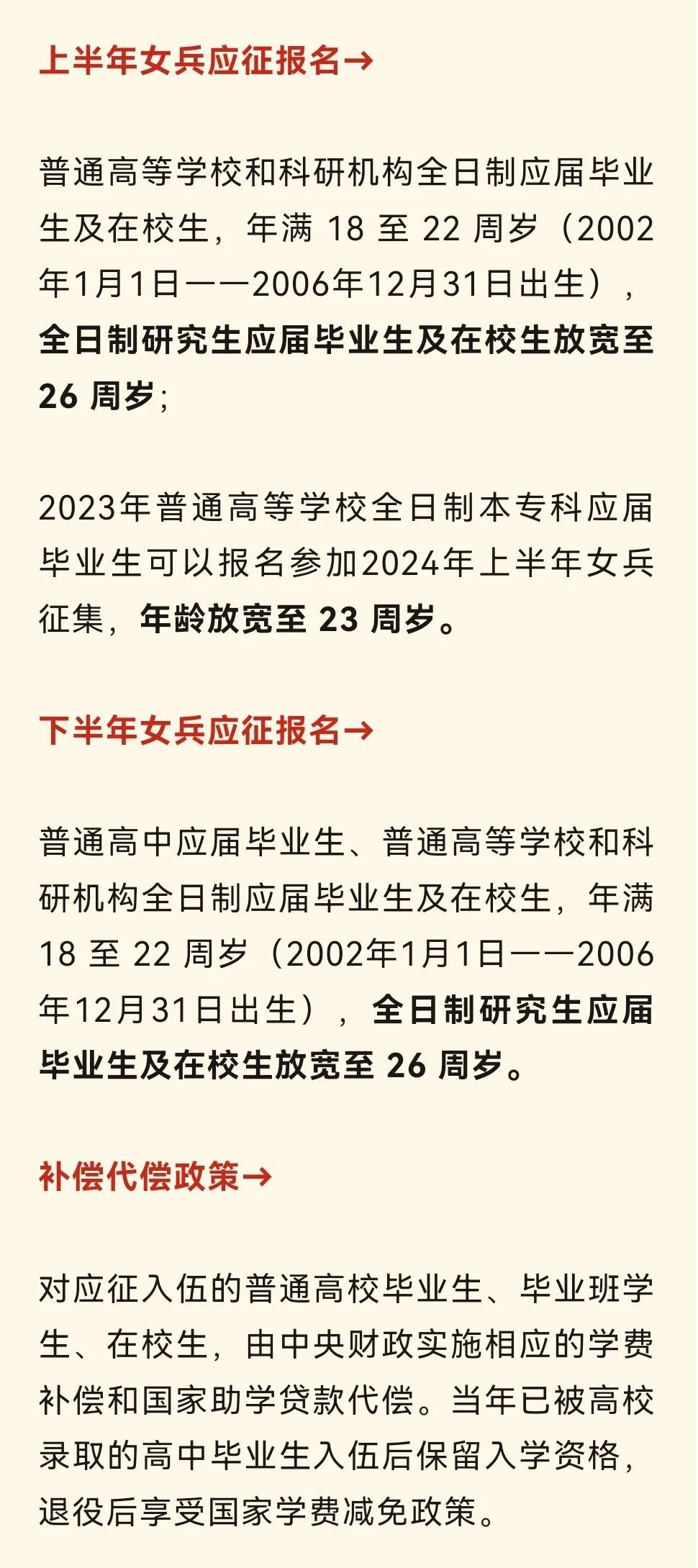 记者从相关部门获悉,全国征兵(女兵)2024年应征报名时间已确定——
