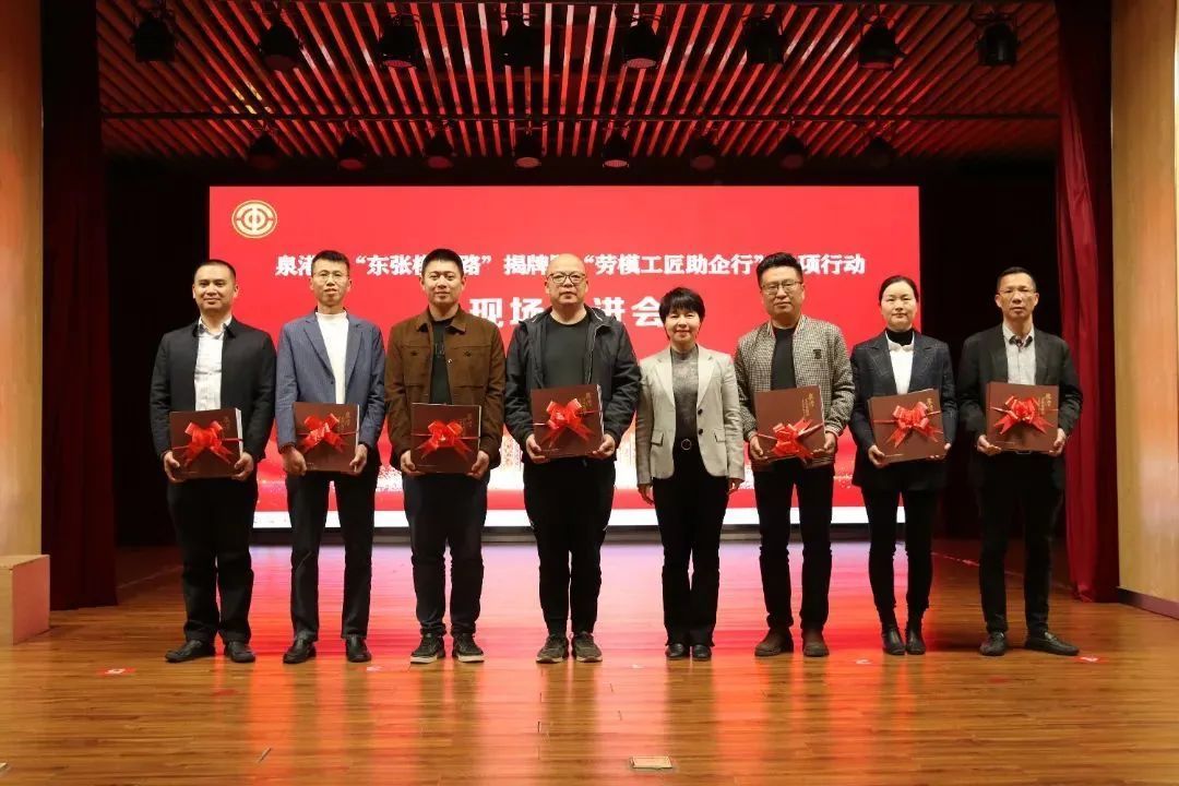 1月3日,在泉港界山镇东张村,市、区、镇、村四级工会联合举行泉港区“东张模范路”揭牌暨“劳模工匠助企行”专项行动现场推进会。