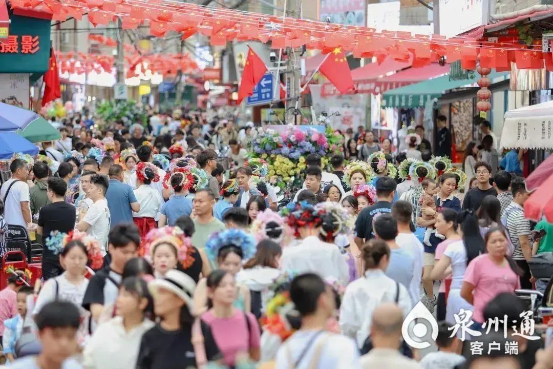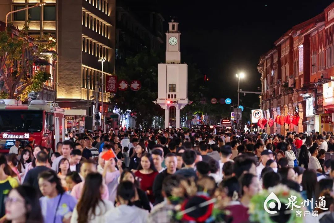 国庆假期,泉州古城游人如织,一派祥和喜庆景象。(张九强 /摄)