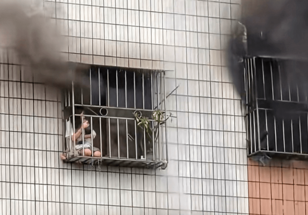 当被困人员被大火堵在了防盗窗处