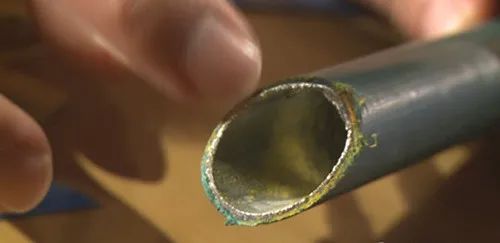 ◆内穿直径1.2厘米钢筋的不锈钢圆管防盗窗。耗时8分多钟,折断3根锯条最终放弃(这个最难锯)。
