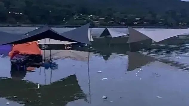 △水位上涨 帐篷、天幕泡在水里(图源:应急管理部)