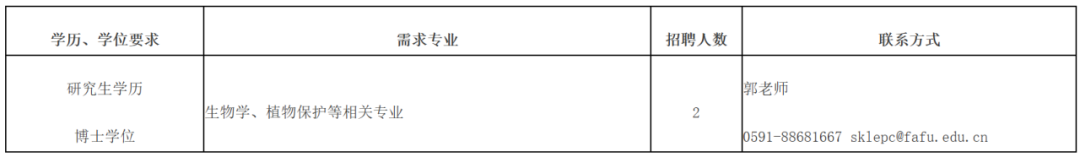 福建农林大学农林生物安全全国重点实验室招聘专业技术人员2名