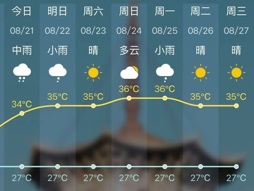 22日,全省多云,部分有阵雨或雷阵雨,局部中到大雨。