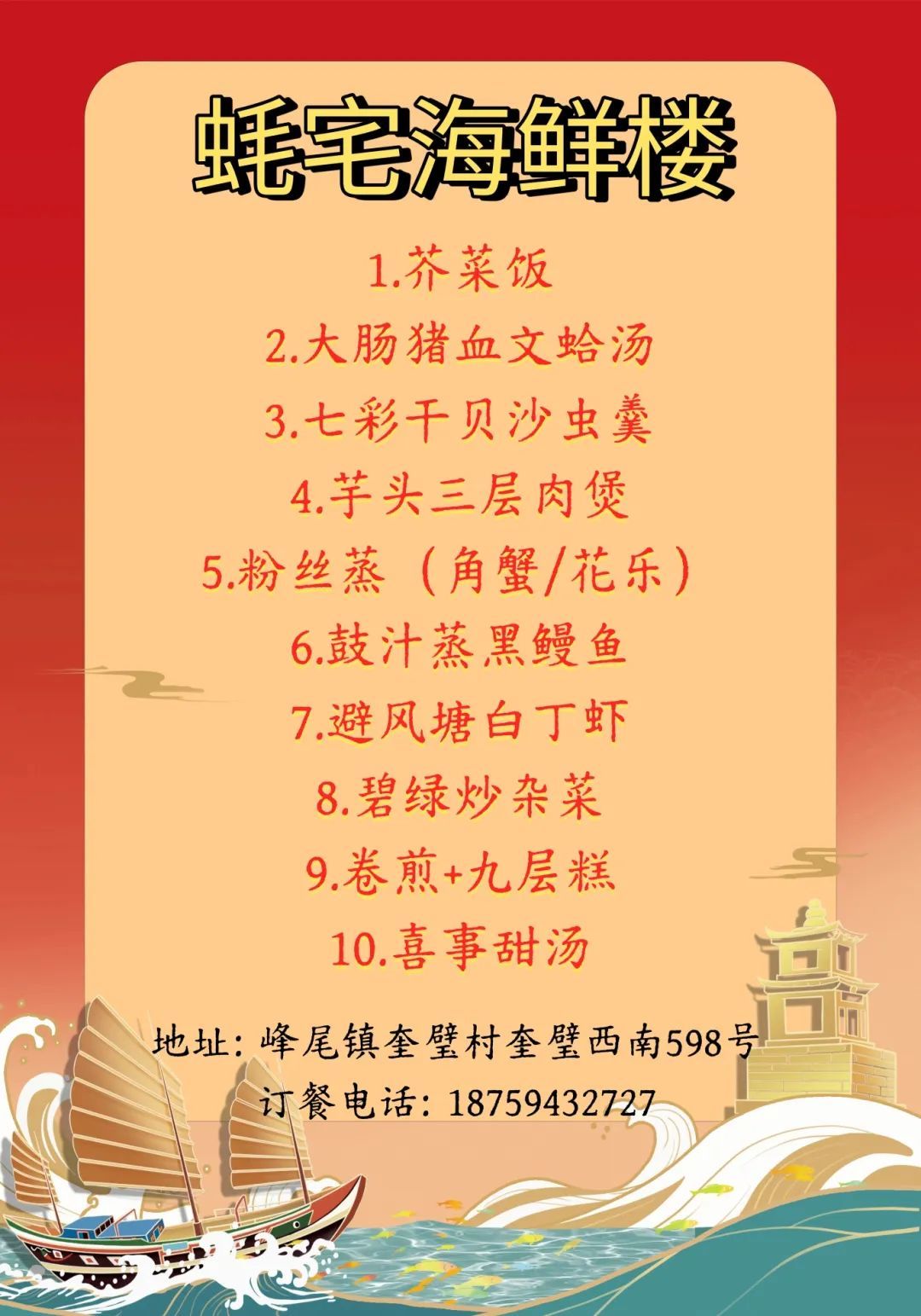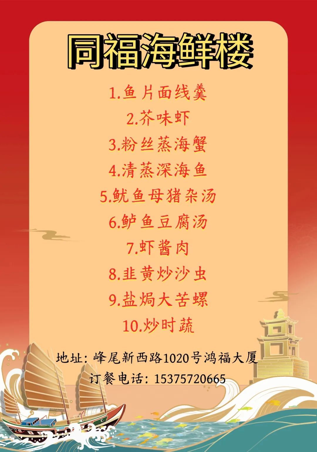 联合8家峰尾本地口碑海鲜楼,推出统一价588元套餐(6-8人量),人均不到75元!