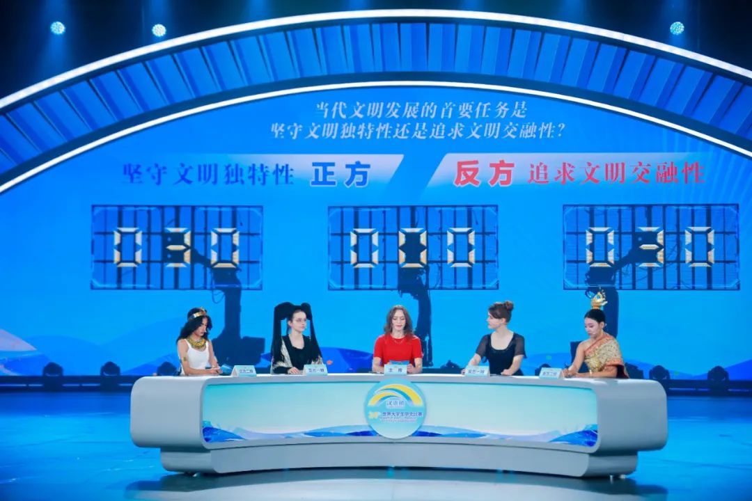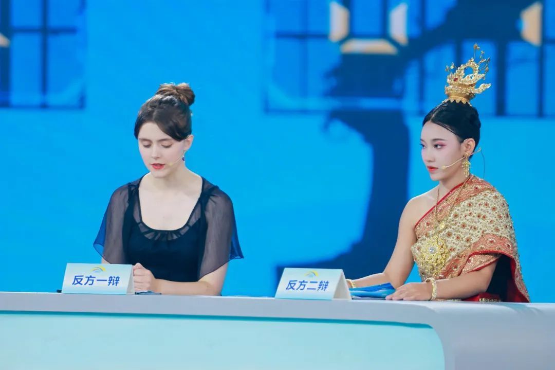第四轮“新秀争鸣 字字珠玑”,选手就“文明交融性与独特性”辩论,德国选手柯夏安凭清晰逻辑展现思辨力。