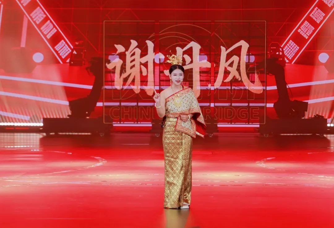第二轮“妙语连珠 笑宴八方”中,选手围绕热点议题进行120秒脱口秀,评委从语言、内容、感染力打分,泰国选手谢丹凤的表演引发全场共鸣。