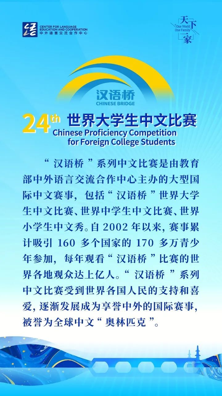 本届比赛自今年2月启动海外预赛以来,已吸引全球141个国家的5万余名大学生参与,最终来自134个国家和地区的155名参赛选手、131名观摩团选手应邀来华参与、观摩全球决赛。全球决赛于8月6日起在北京、福建两地举行,历经“过桥积分赛”、晋级赛与半决赛层层选拔,来自泰国的谢丹凤、埃及的奥拉、德国的柯夏安、美国的毕雪莉、澳大利亚的爱娃脱颖而出,成为五大洲冠军,站上全球总决赛舞台。
