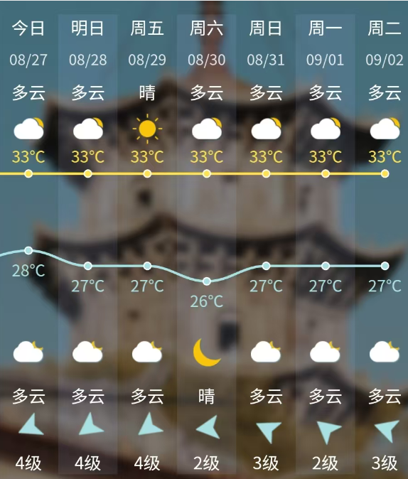 最高气温在33℃左右