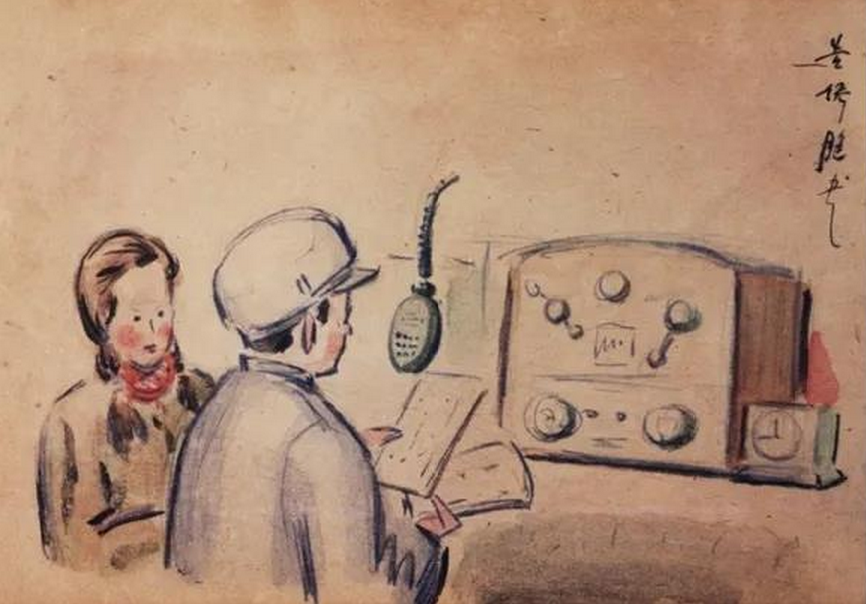 王唯真早年画作:在延安广播电台播音室播发《告侨胞书》