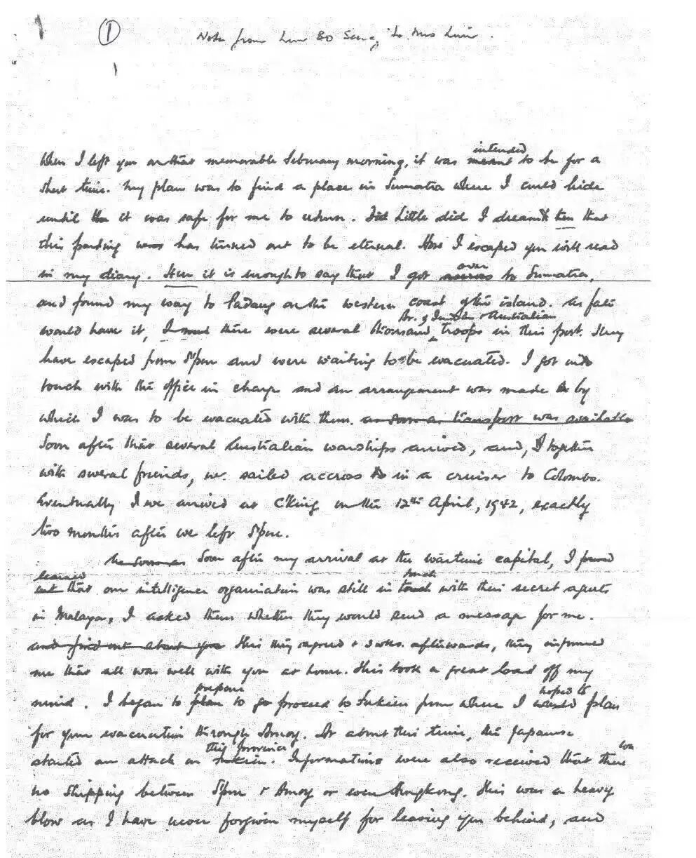 当我在那个难忘的二月早晨,离开你的时候,原以为这只是短暂的别离。我本计划在苏门答腊某处先找个栖身之处,等候安全时日再回来。我没想到,这一别竟成永诀……