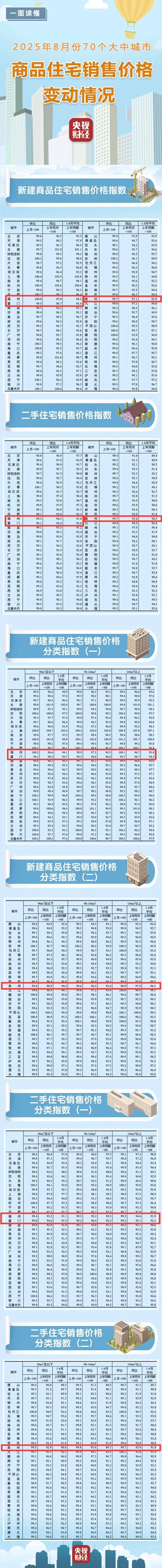9月15日,国家统计局发布2025年8月份70个大中城市商品住宅销售价格变动情况。