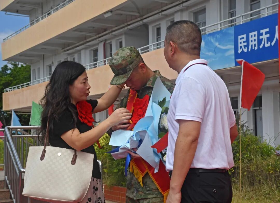 现场既充满豪情,也不乏温情。亲友们纷纷记录光荣时刻,一位母亲悄悄拭泪却笑容温暖,一位父亲郑重拍肩嘱咐——牵挂与骄傲交织成送行中最动人的画面。
