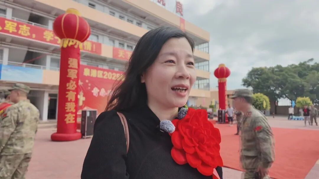 新兵林思齐的母亲陈白云说:“孩子从小梦想穿军装,我们尊重支持他的选择。交给国家,我们放心!”