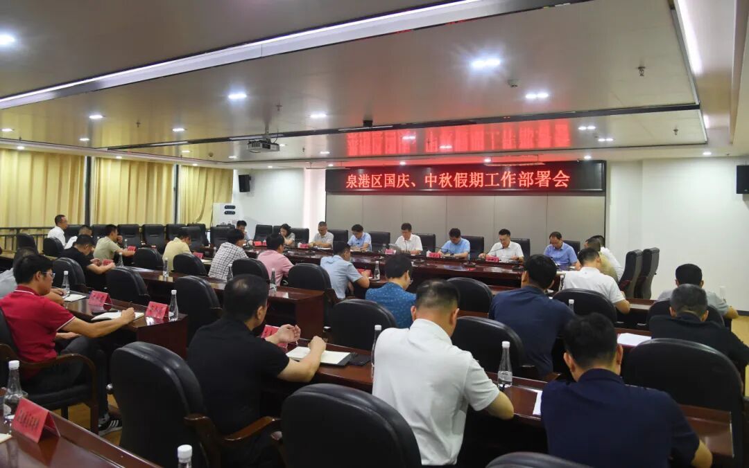 9月18日下午,泉港区召开专题会议,研究部署国庆、中秋假期全区安全稳定、文旅经济发展等工作。区委副书记、区长杨凤翔出席并讲话。区领导柯明好、蔡奔腾、陈其昌、庄一鸣、陈荣省、郭雅婷、朱添洪、庄向阳,泉港石化工业园区管委会副主任林坤清参加会议。