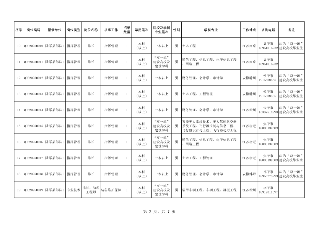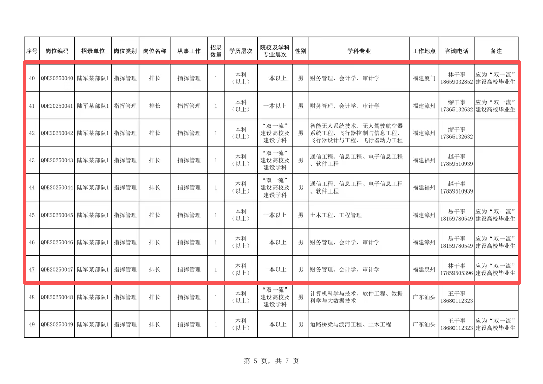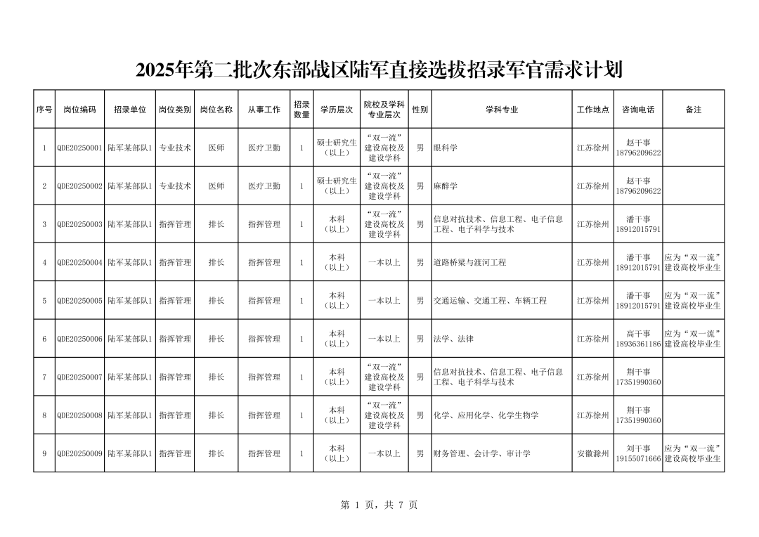 2025年第二批次东部战区陆军直接选拔招录军官公告