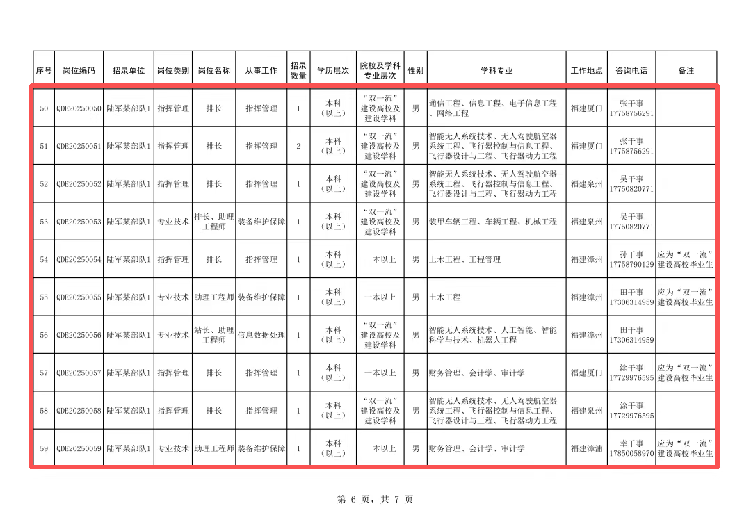 招录过程全程审核、全程淘汰,如考察考评中发现不符合标准条件即取消报名人员招录资格。报名人员对个人提交资料的真实性负全责,若有弄虚作假,一经发现即取消招录资格。本次公开直接选拔招录军官考察考评不指定辅导用书,不举办也不委托任何机构举办辅导培训班和招录代理,敬请广大应届毕业生提高警惕,切勿上当受骗。用人单位设立的招聘咨询电话,可从岗位计划中查看。