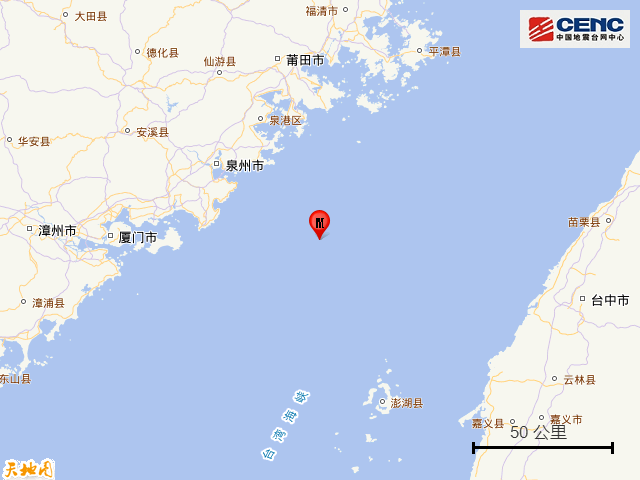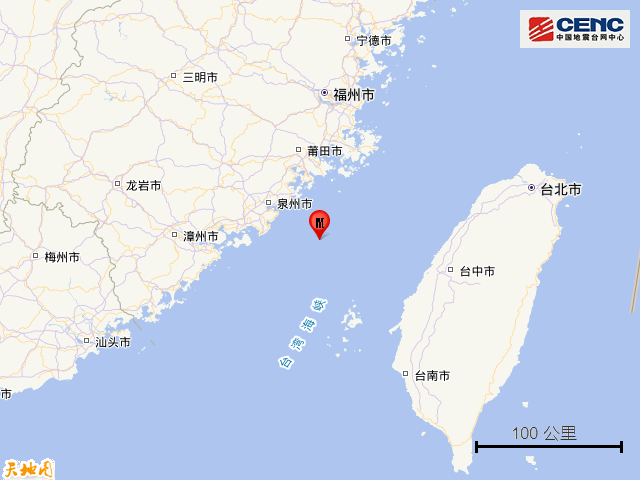 速报参数:据中国地震台网正式测定,9月20日6时56分在台湾海峡发生4.5级地震,震源深度10公里,震中位于北纬24.46度,东经119.24度,距海岸线最近约53公里,距台湾岛约119公里。
