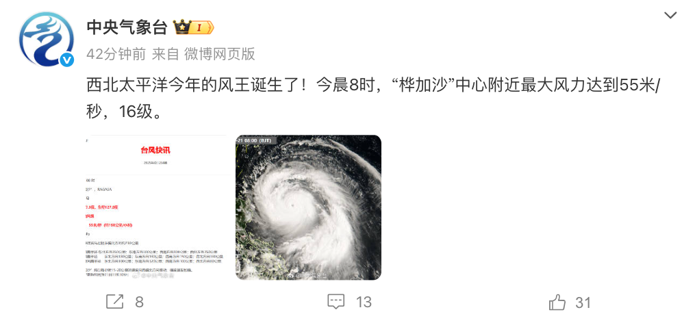 比“桦加沙”先一步成为超强台风级。