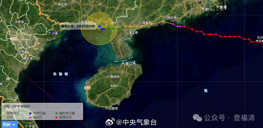 在以台风级别登陆广东阳江市海陵岛后,今年第18号台风“桦加沙”(热带风暴级)的中心已于25日6时30分前后在广西北海市沿海再次登陆,登陆时中心附近最大风力有8级(20米/秒),中心最低气压992百帕。