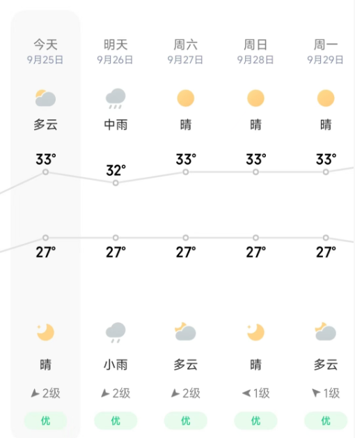 今天到本周末气温没有明显波动