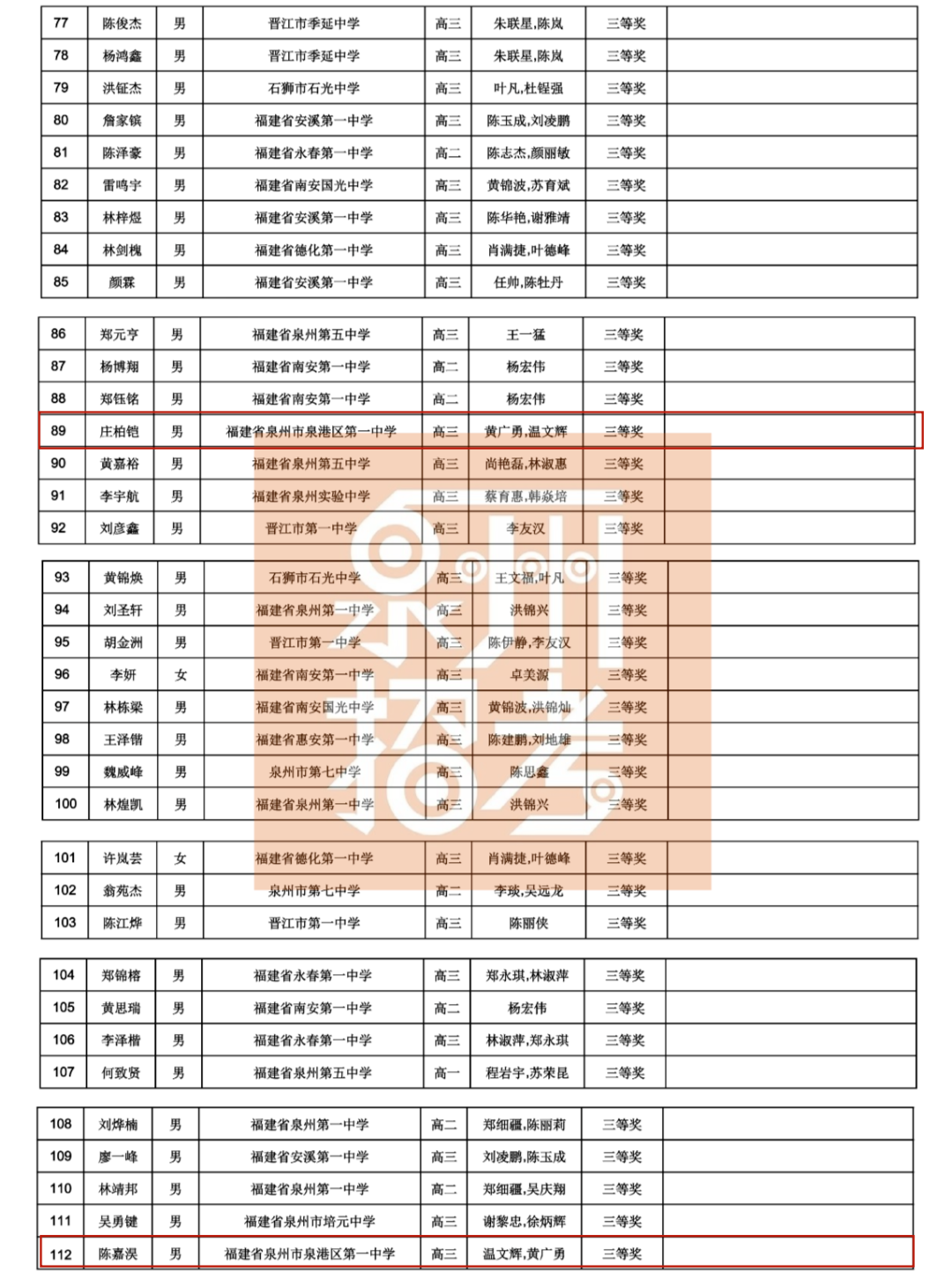省奖名单公示!祝贺泉港这些同学→