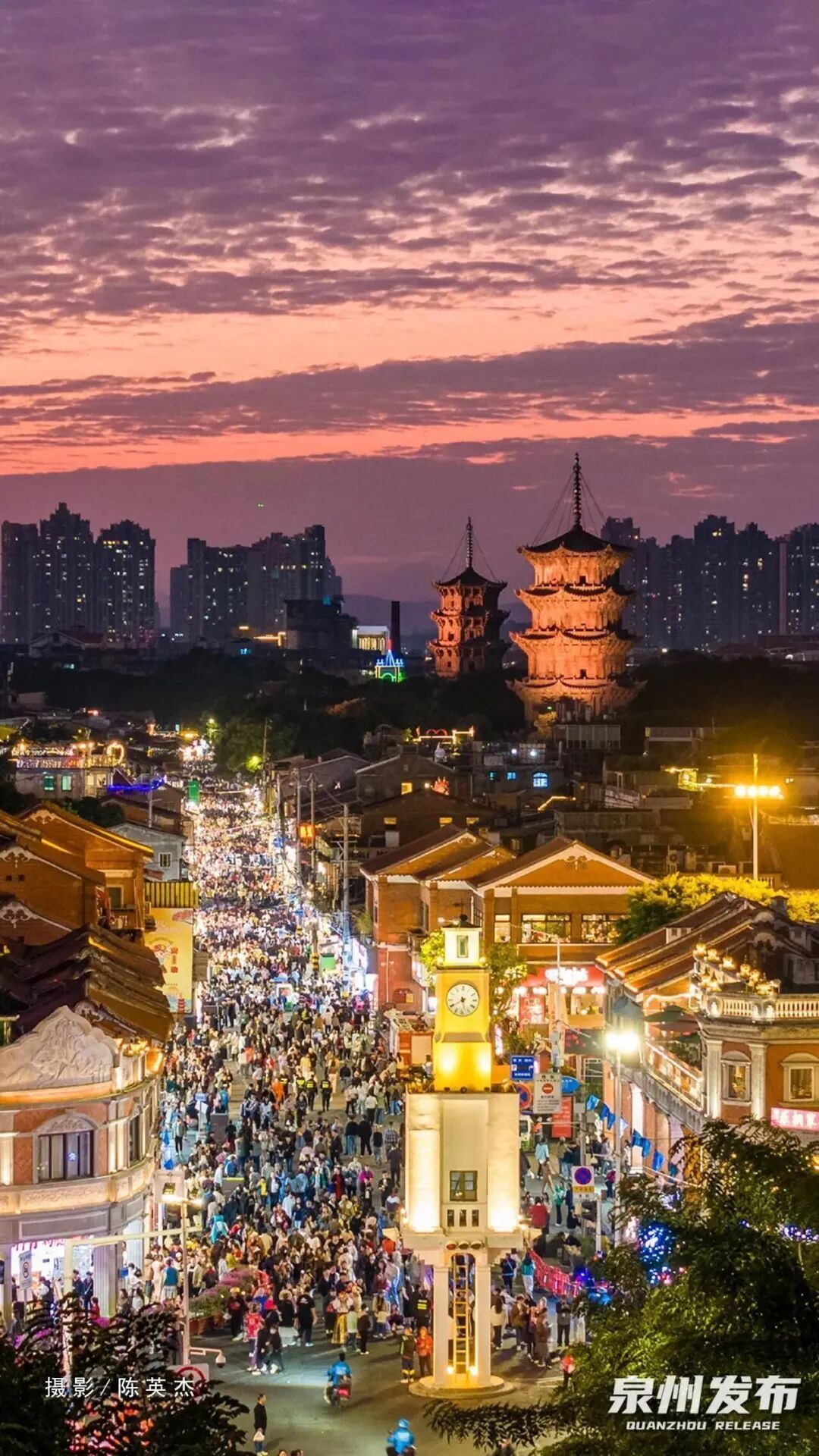 在岁月的长河里,钟楼默默见证着这座城的千年海丝遗韵与市井烟火的温度。开元寺的香火缭绕不绝,东西塔遥相对望,西街的红砖古厝沉淀着岁月,中山路的骑楼仍回荡着南洋旧梦——所有这些,都被钟楼一一收录进流动的光阴里。而它所守护的这座城市,既传统又新潮,既厚重又松弛:世遗古迹与寻常人家为邻,一道美食背后可能藏着一段宋元海洋商贸史,非遗技艺依然活跃在街头巷尾。这样的泉州,让人一见倾心,一生难忘。