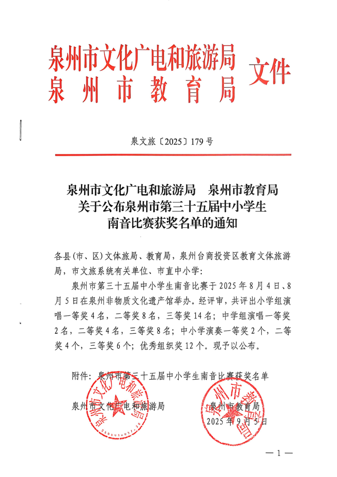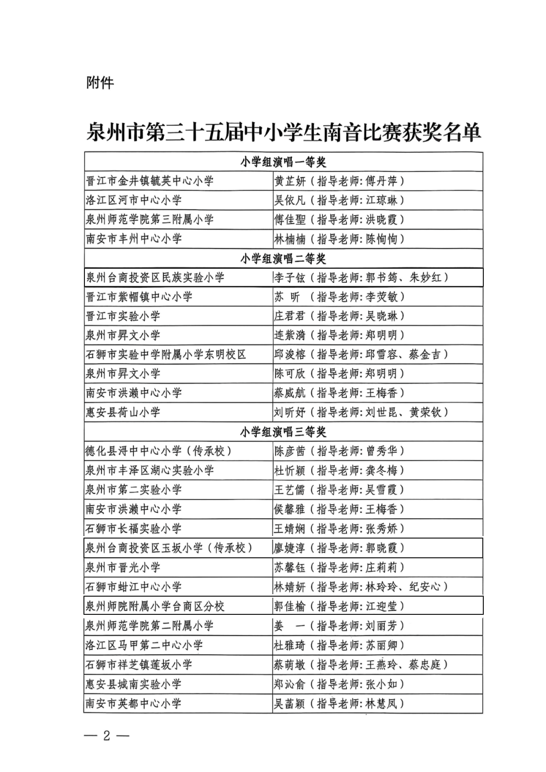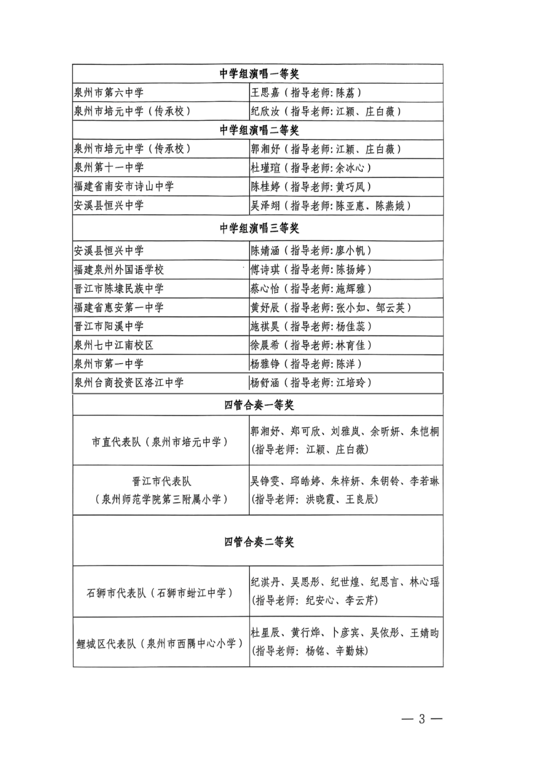 日前,泉州市第三十五届中小学生南音比赛结果出炉。