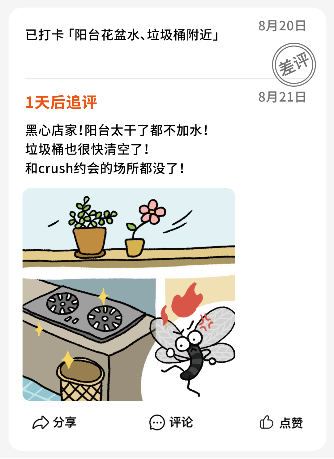 这次连叶子背面竟然也被喷洒了灭蚊药