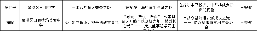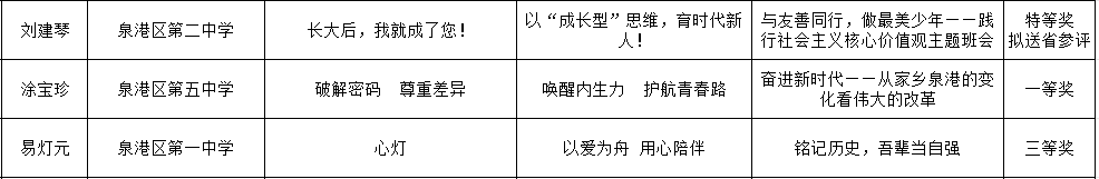近日,第三届泉州市中小学班主任基本功展示交流活动获奖名单公布,我区小学、初中、高中三个学段共8名教师获奖,展现了我区班主任队伍的卓越的专业素养和育人风采。