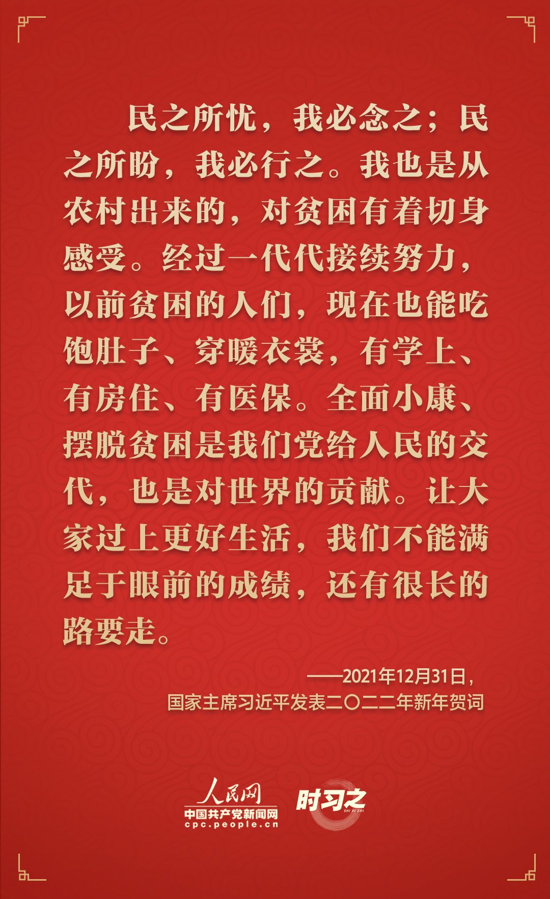 2022年12月31日晚,国家主席习近平将发表二〇二三年新年贺词。在历年的新年贺词中,习近平主席心系民生冷暖、情牵万家灯火,体现着大国领袖深厚的人民情怀。人民网·中国共产党新闻网“时习之”栏目带您一起重温习近平主席的新年贺词,感悟“人民”二字重逾千钧。
